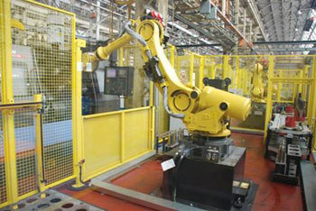 Cells one to three each have two Doosan Puma CNC machine centres, supplied by Mills CNC Ltd, the prime contractor, which provide a degree of flexibility dependent on production demand. Cell four has a single machine centre. Each cell has a FANUC Robotics R2000iB/175 robot loading machines and peripheral equipment.