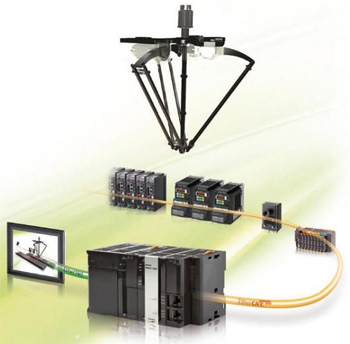 Two models of delta robot are currently available to match different reach and load capacity requirements. The delta robot arms use Omron’s G5 servo motors to reduce settling times. Omron says that a high frequency response of 2kHz makes these high end servo motors ideal for delta robot positioning tasks.