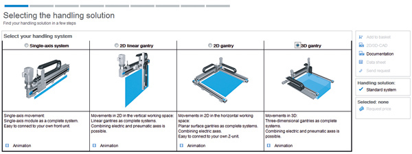 Now there is a new online Cartesian handling system configuration tool which promises to take all the pain out of the process and provide you with a finished Cartesian handling system design within 20 minutes (and in a demo, your Robotics Update team saw a Cartesian handling system designed and configured in just five minutes).