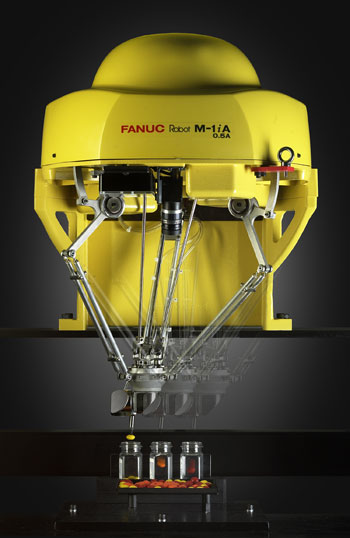 Pictured right: the M-1iA delta robot is designed to deliver accurate movements and handling of small objects at high speeds.