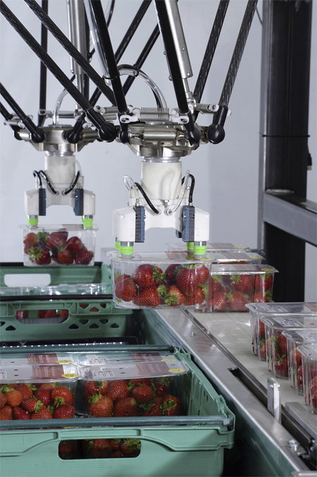 Vacuum is another inherently gentle end-effector technology that is likely to feature on future robotic systems. Brillopak’s approach to vacuum handling is different to others in the industry in that the company uses cups with independent vacuum generators for greater control over the picking and placing operation. Bagged salads, punnets of berries and individual poppadoms are just some of the products that are currently being handled via vacuum, and Brillopak expects to see new applications emerging in the next few years.