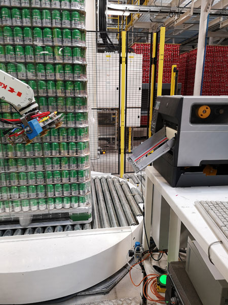Pegler further states that an additional advantage of working with the Kawasaki team was that on this project Blackstar could also do away with using a PLC on the robot system, thus reducing costs and complexity, while also seeing efficiency improved. Working on a cycle time of 25 seconds per pallet for labelling, the RS-10N robot and system has thus far proved faultless. Almost 9,000 cans are contained on each of the hundreds of pallets being delivered by this Blackstar customer weekly and, to date, not a single instance of can/label contact has been reported.
