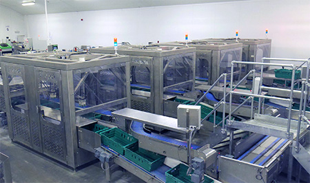 The project saw Brillopak install four UniPAKer robotic crate packing systems, four Crate DESTAKers, four vertical accumulation units and three robotic palletisers. Thanks to this investment in automation, Adrian Scripps now has a fully automated crate packing operation that is capable of running at up to 75 ppm, giving the company the capacity uplift it needed.