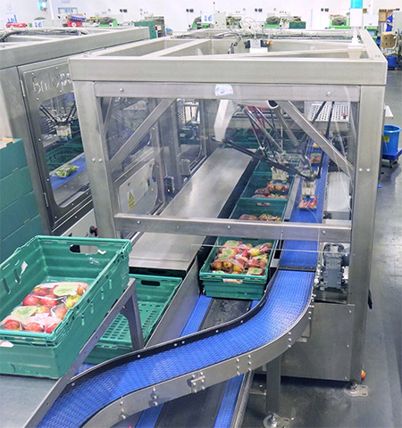 In 2018, Adrian Scripps took the decision to invest in two completely new fully automated packing and palletising lines and upgrade the end-of-line kit on two existing lines, following an investment in new flow wrapping equipment. Its existing mechanical layer crate packing systems were limiting output, as they could not keep pace with the flow wrappers. “Our existing packing system was working flat out at 15 cycles per minute; we soon worked out that we could put apples into the flow wrapper much quicker than this,” recalls James.