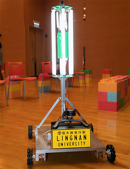 Dr Albert Ko, Director of the Lingnan Entrepreneurship Initiative and leader of the project, said that LU is seeking financial support to produce 50 autonomous UV-C disinfection robots by the end of 2021, to provide free disinfection services for schools, care homes and NGOs. “Over the long term, we would also consider setting up a social enterprise to be of service to private organisations such as hotels and guesthouses.