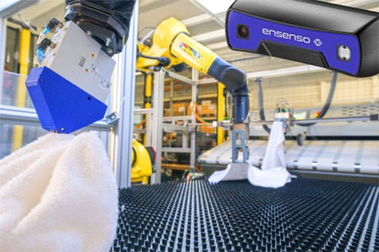 But the Sewts system VELUM can provide this. With the help of intelligent software and easy-to-integrate IDS cameras, it is able to analyse dimensionally unstable materials such as textiles. Thanks to the new technology, robots can predict the behaviour of these materials during gripping in real time. It empowers VELUM to feed towels and similar linen made of terry cloth easily and crease-free into existing folding machines, thus closing a cost-sensitive automation gap.