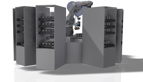 220624_CME_2The system is manually primed with the various component parts needed to complete the assembly process. Six cabinets, each holding 100 components are positioned around the rear of the robotic cell. Three of these are loaded with trays containing valve bodies and the remaining three with trays containing coils. As part of the assembly process, the robot is also used to open and close the drawer magazine systems to collect and replace parts.