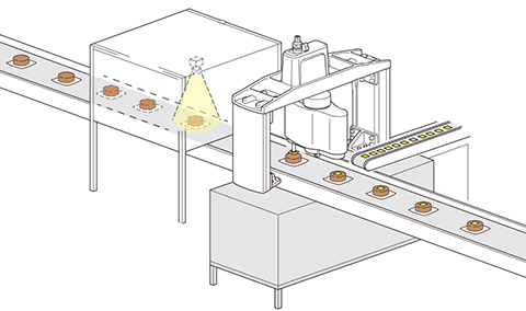 As a further enhancement in the sweet packaging application, integrating the RCXiVY2+ vision system enabled each YK400XE to check the orientation and position of each individual item to be packed means the modernised production area can now operate continuously for 24 hours per day, with supervisors working 8-hour shifts. The LCMR200 conveyor modules give the flexibility to adjust the conveyor stop position quickly to handle boxes of different sizes.