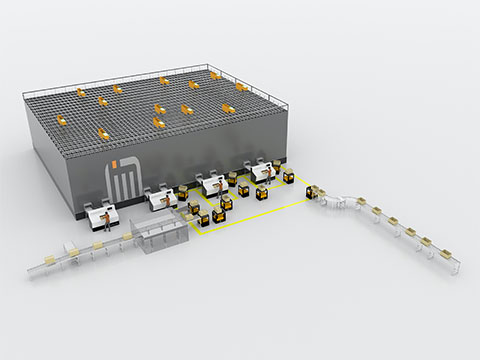 Providing access to an extensive range of components and accessories from leading brands, K-Parts delivers products of all shapes and sizes. To reduce packaging and boost efficiency, when the company receives an order, it builds a custom box that matches the dimensions of the selected products. Robots from Prime Vision will transport these boxes from the infeed line to the correct picking stations, where K-Parts employees will pack items selected by the ASRS.