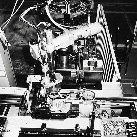 The IM division continued to present new and more advanced concepts at exhibitions worldwide. As technological development continued, the orders taken at these events became more frequent and larger. These early projects included an assembly line for brakes and a photocopier manufacturing system. Since then, the division has delivered more and more robots to support production activities in an increasingly diverse selection of industries, such as assembling consumer electrical appliances, transporting automotive components, and producing large liquid crystal panels.