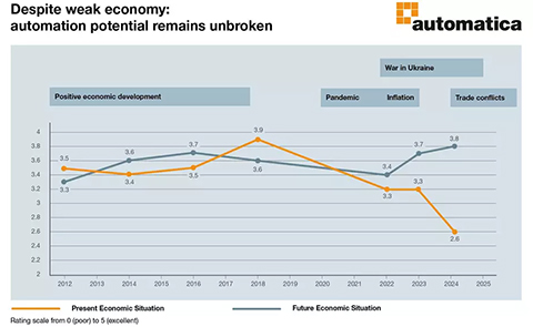 Exhibitors of the leading exhibition automatica look ahead to the coming years with great confidence – despite economic challenges. Expectations for the future economic development of the industry even reached an all-time high in 2025.