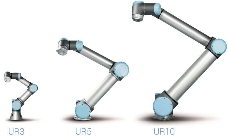 Currently there are three robots in the range, the established UR10, UR5 and the recently introduced workbench-mounted UR3 for assembly, polishing, gluing and screwing applications. The model denominations reflect the maximum payloads of 10, 5 and 3 kg respectively.